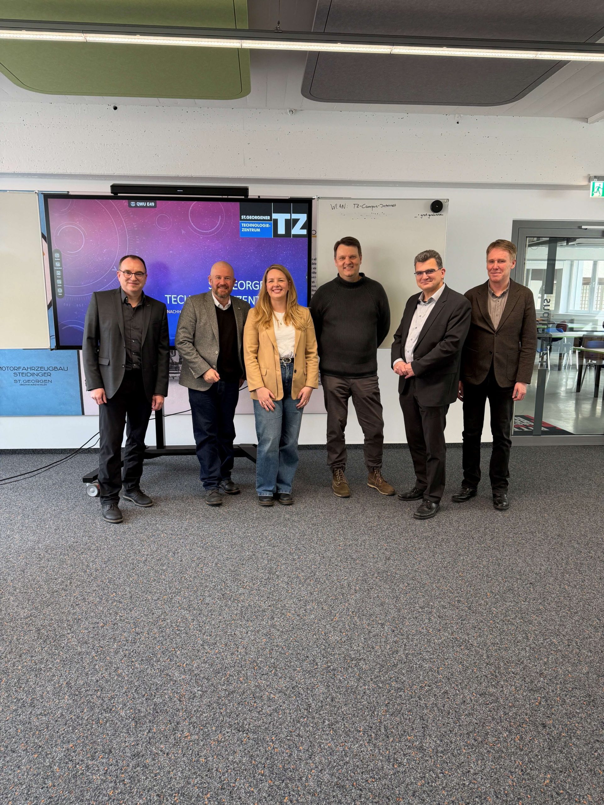 Am 03.02.2026 durfte der TZ-Geschäftsführer, Martin Friedrich, den FDP-Europaabgeordneten Andreas Glück, den FDP-Landtagskandidaten Prof. Dr. Eisenbiegler und den FDP Ehrenvorsitzenden des Kreisverbandes Schwarzwald-Baar, Gerhard Mengesdorf, zu einem gemeinsamen Austausch im TZ begrüßen. Zu Beginn erläuterte Martin Friedrich die Hintergründe der Entstehung des TZ und dessen mittlerweile 40jähriges, erfolgreiches Geschäftsmodell. Jana Kiesel, von der bwcon, zeigte dann auf, welche niederschwelligen (weil kostenlosen) Angebote es für Gründungsinteressierte bzw. Gründer in der Region Schwarzwald-Baar-Heuberg gibt, die zukünftig unter dem “Gründergarten SBH” gebündelt werden. Danach erfolgte ein Austausch der Politiker mit 2 Vorzeige-Unternehmern aus dem TZ, Hans-Dieter Schondelmaier von der scaleo-systems GmbH und Dr. Michael Otte von der Inspire Technologies GmbH, die den Politikern repräsentativ von aktuellen Problemen der Unternehmerschaft berichteten. Dabei ging es u.a. um das Thema Datenschutz und Lieferkettengesetz.